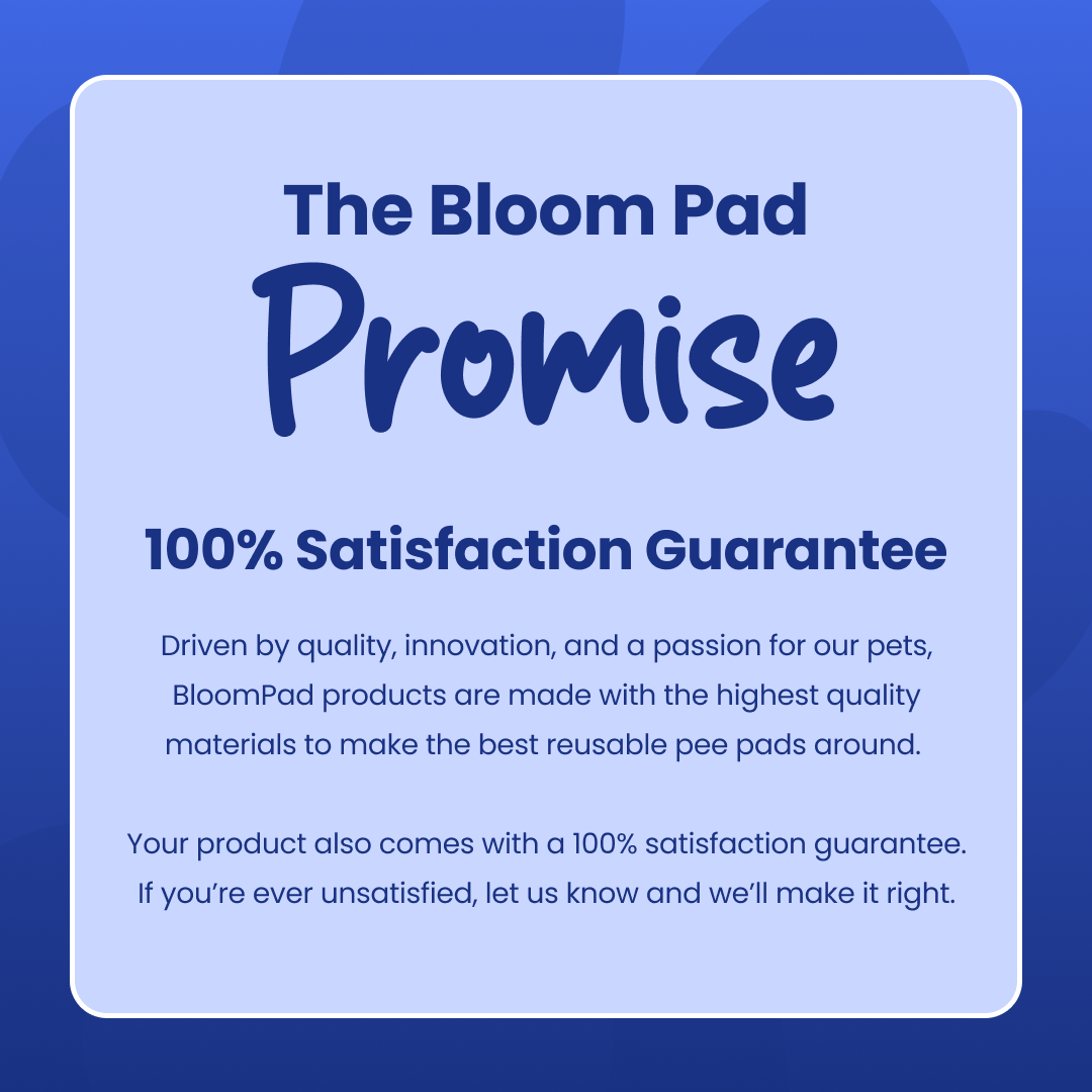 The pheromone technology is so effective we back it with a 90-day money-back promise. If your dog won't use Bloom's Dog Pad, or you're disappointed in any way, just ship it back for a full refund. No explanation needed.
